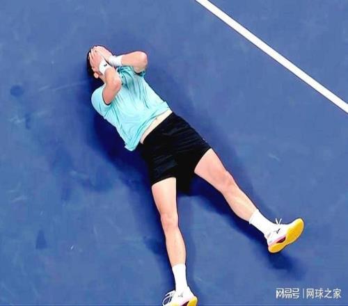 最后來猜一猜認(rèn)一認(rèn)。下面這張圖片是一位球員獲勝之后倒地慶祝。不作提示,您能認(rèn)出她是誰嗎?